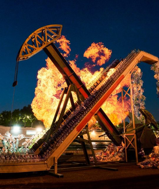 Created for the UN Wildlife and Diversity Conference in Montreal, Benjamin Von Wong’s Extinction Thermometer, embedded with skulls from across North America, is a 10-foot-tall reminder of the connection between climate change and biodiversity loss. This isn’t Benjamin’s first installation for the UN. Unveiled in front of Paris’ Musee d’Orsay for the Global Plastic Treaty Negotiations, the Perpetual Plastic Machine is a working oil rig that intersects with a plastic production line to form a giant red X. Only slightly less dramatic is his “The Parting of the Plastic Sea.” Also known as #Strawpocalypse, it’s made from 168,000 straws.